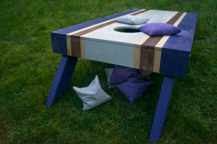 - There are 4 bags per set. 2 sets of different colors are needed to play singles or doubles